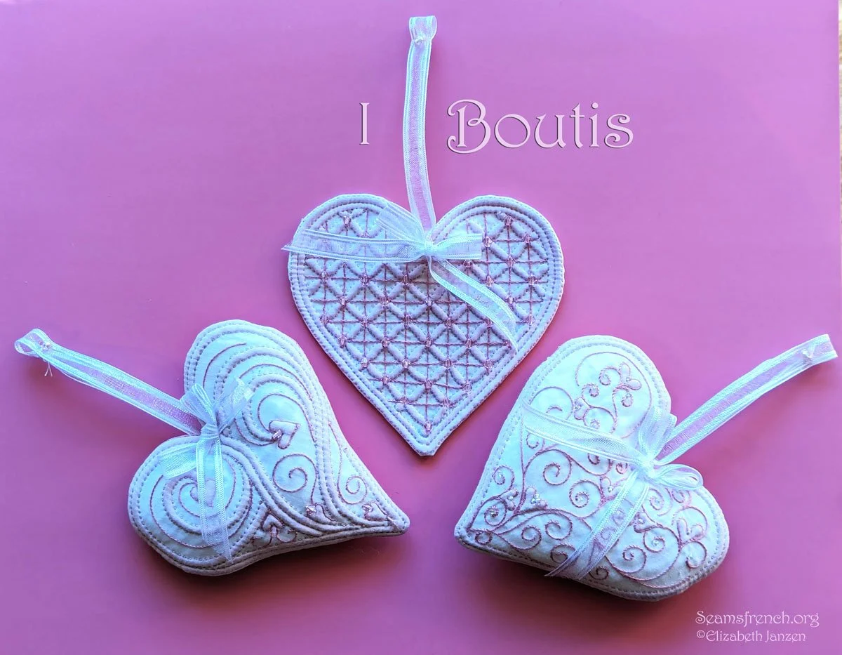 The project is small, easily portable and suitable for both beginners as well as more experienced stitchers. Depending on the colour choice of the threads and embellishments, these little hearts can easily adapt to any occasion or season: Christmas tree ornaments, Valentines, weddings, bridal showers, thank-you gifts, etc.